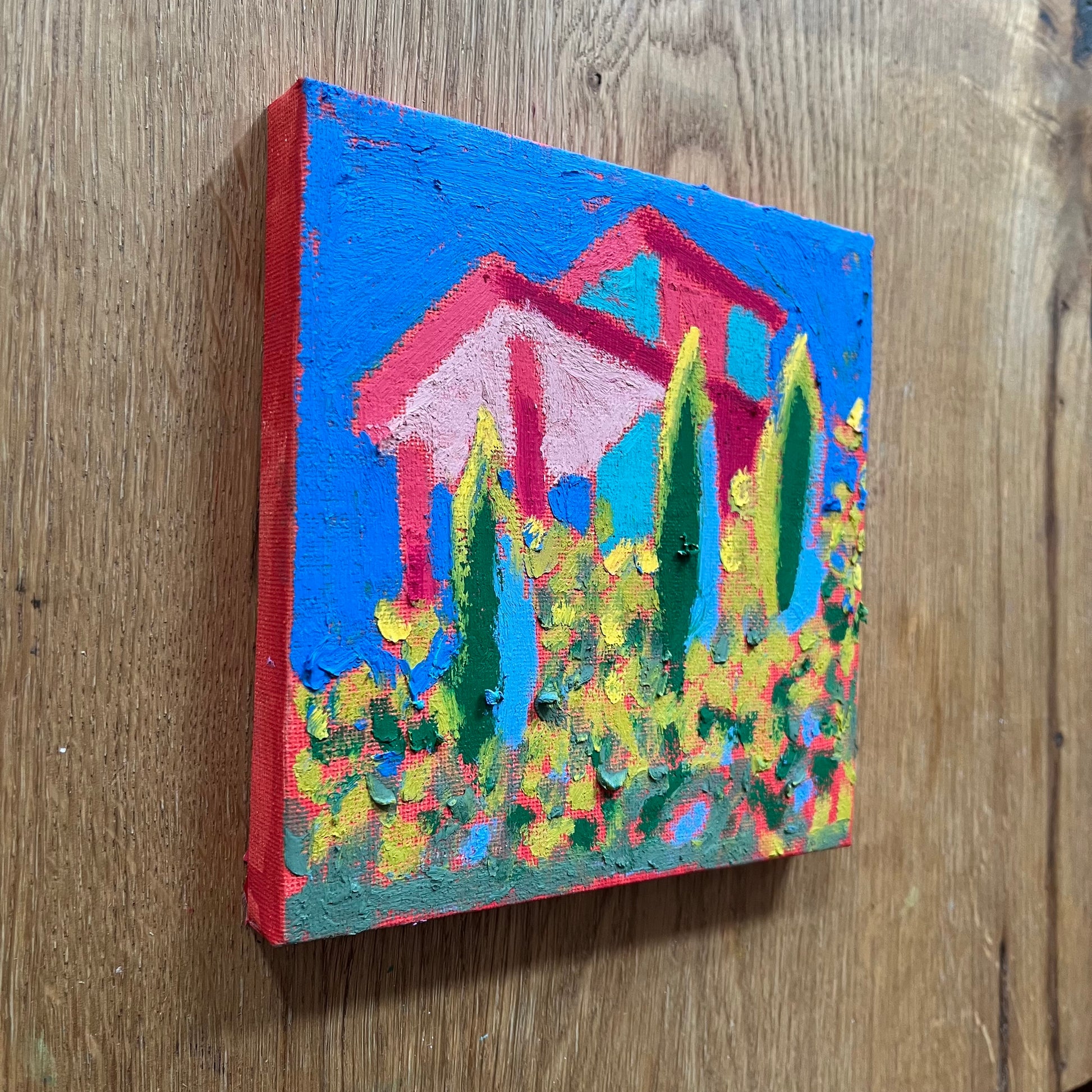 Painted with acrylics and oil pastels on canvas on a stretcher frame