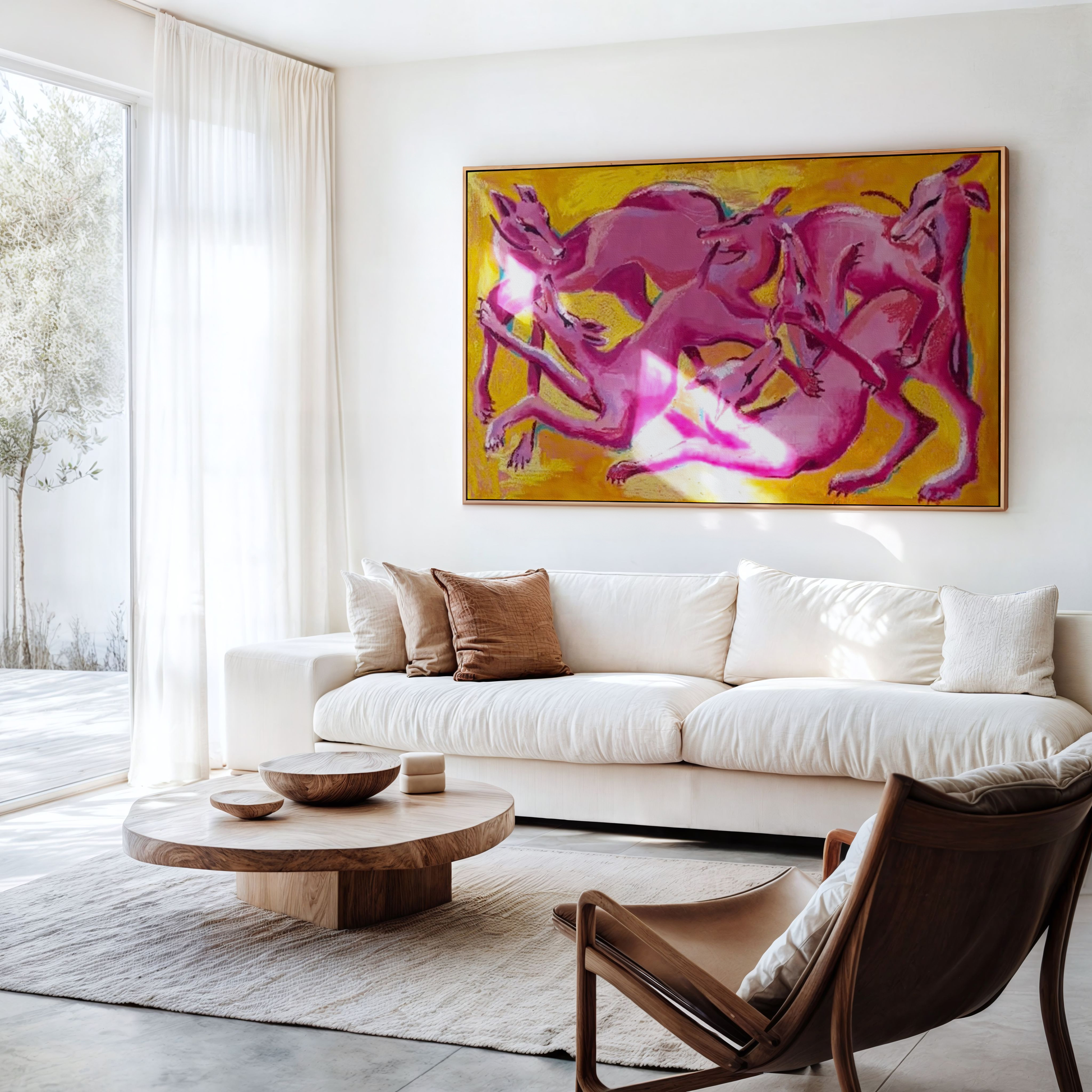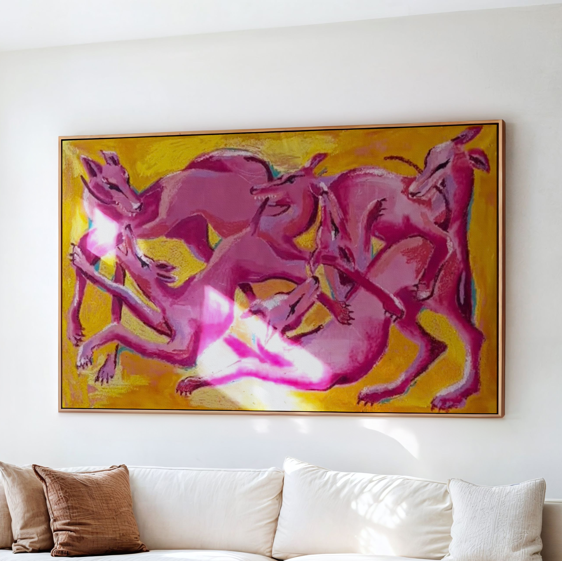 The frame on the picture is for presentation reference and is not included, the purchase contains only the painted canvas and the measurements refer to the canvas without framing