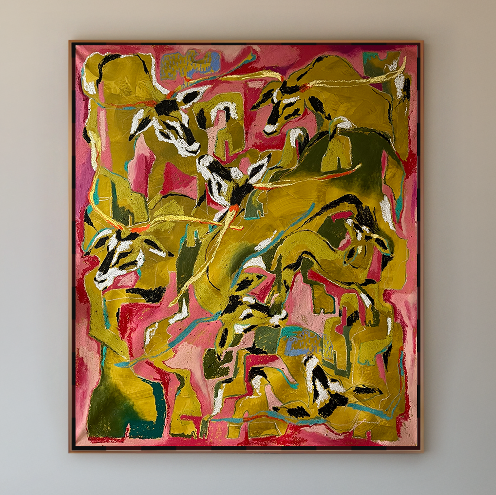 This original artwork is created with high-quality oil pastels and oil sticks on 380g premium canvas.