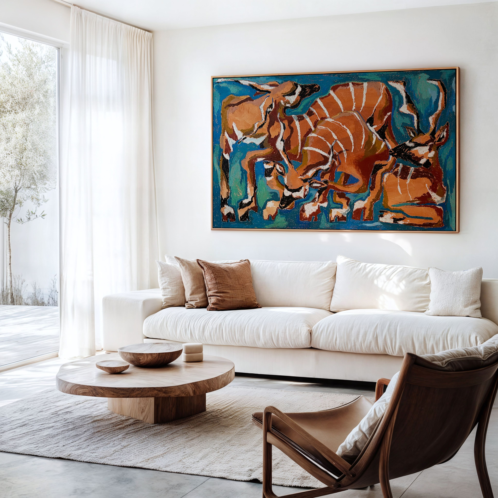 The frame on the picture is for presentation reference and is not included, the purchase contains only the painted canvas and the measurements refer to the canvas without framing