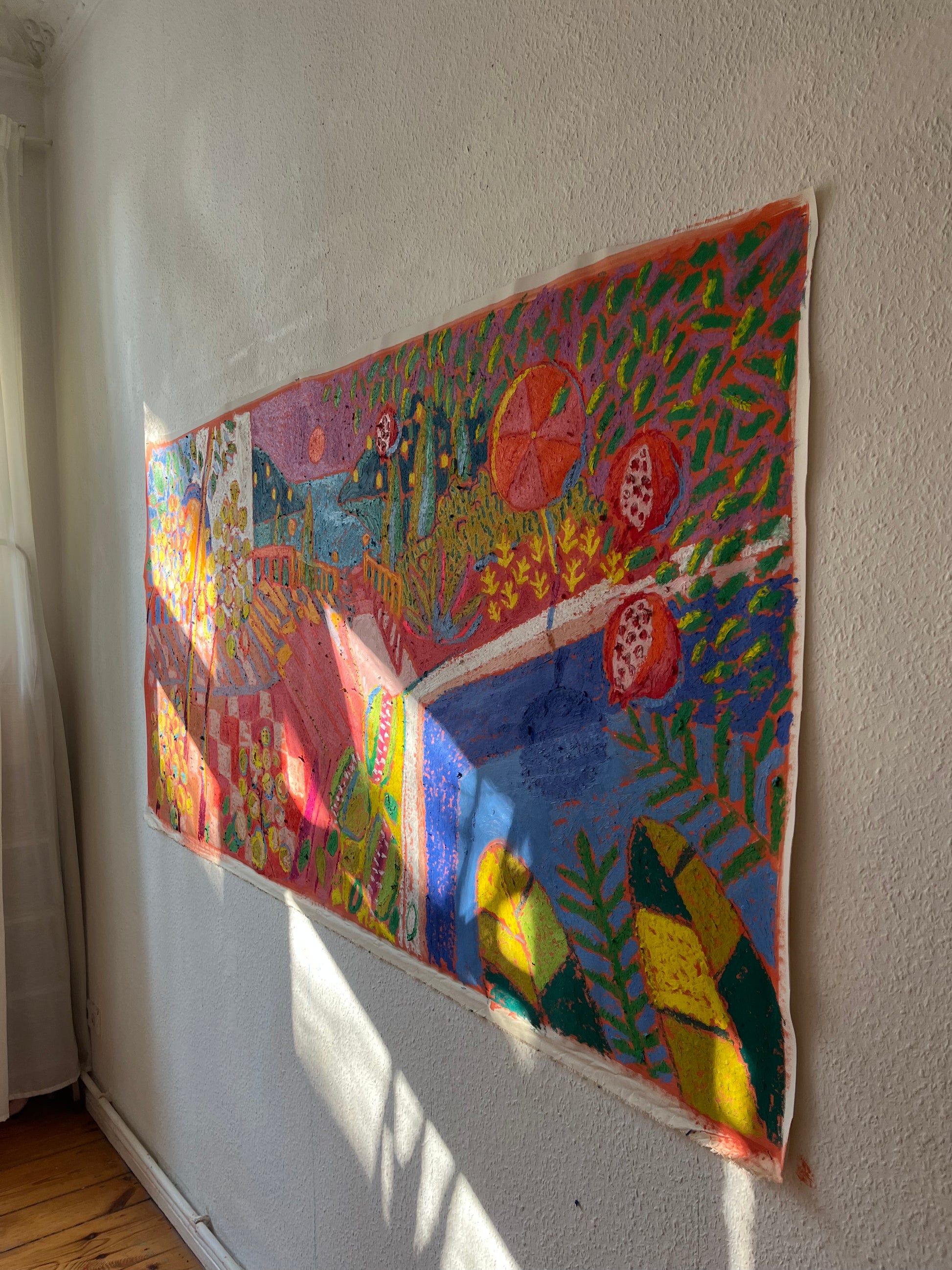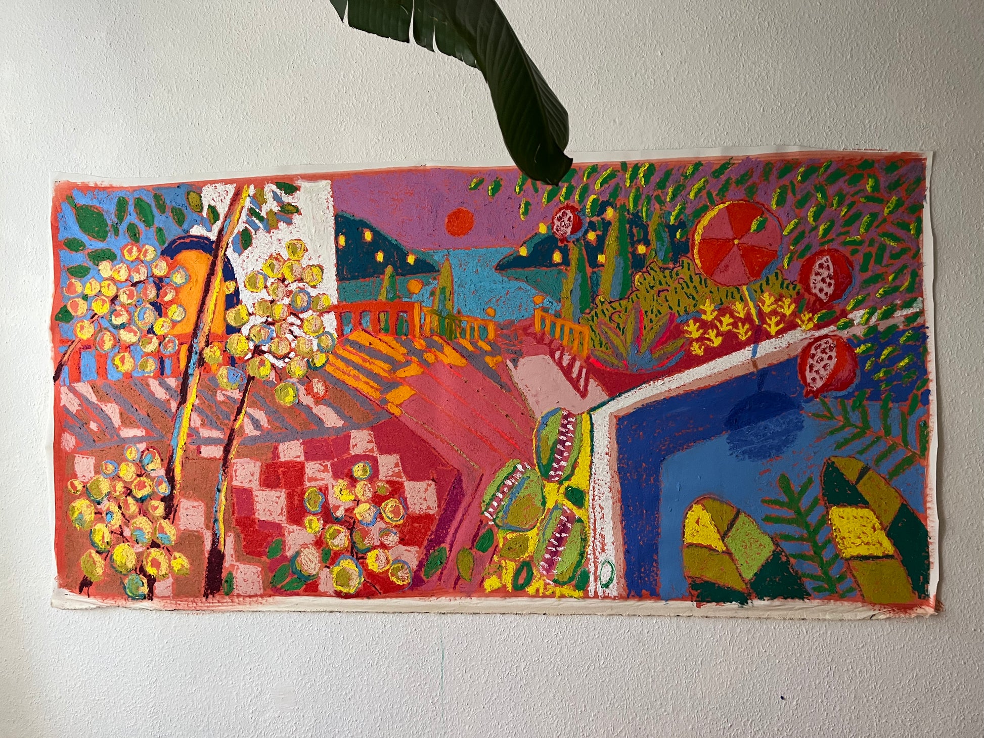 Please note that due to the use of Oil Pastels, the painting might still feel a bit tacky. I try to be as thorough as possible when fixing the artwork, but please still handle it with care when touching or framing it.