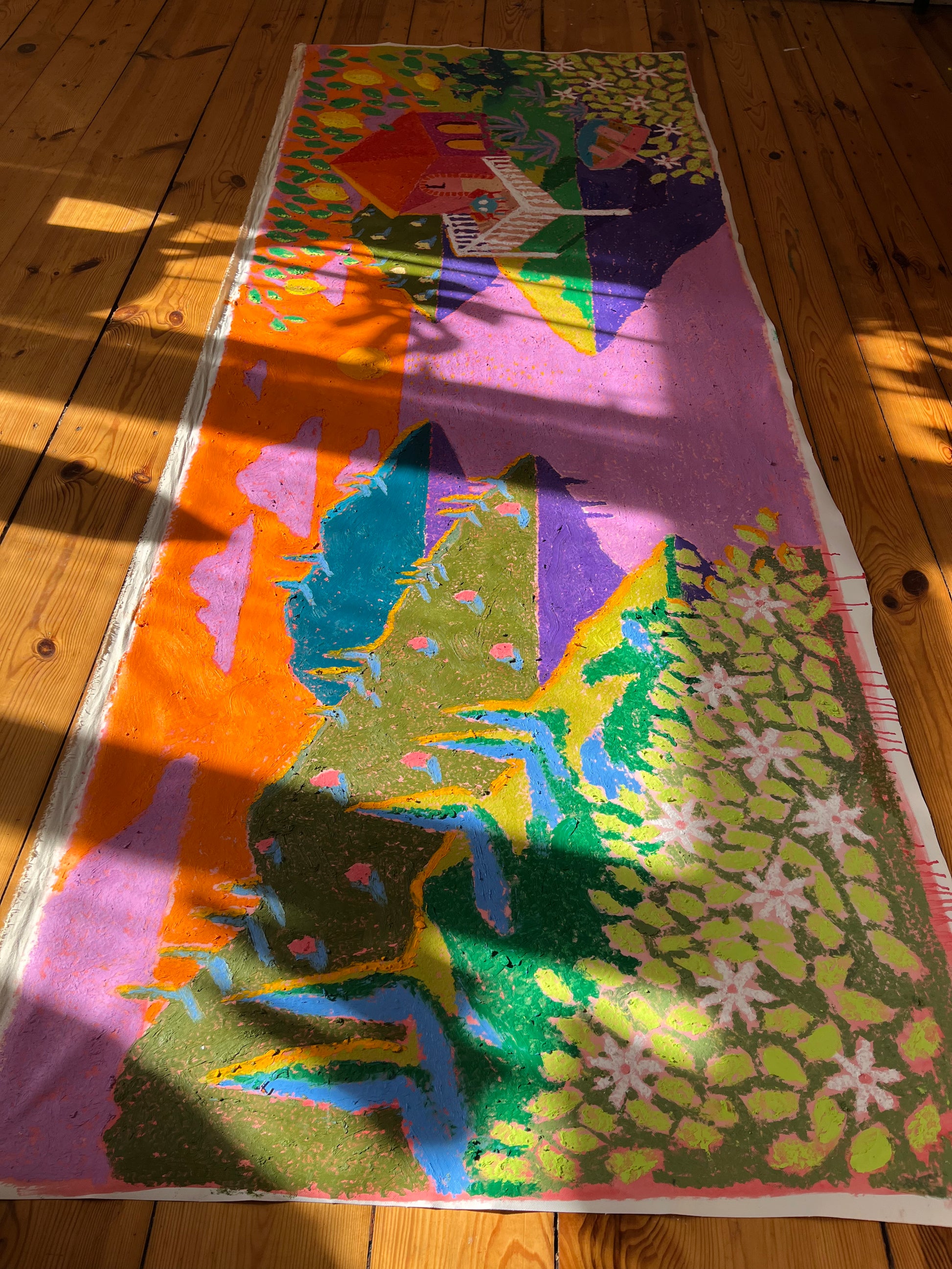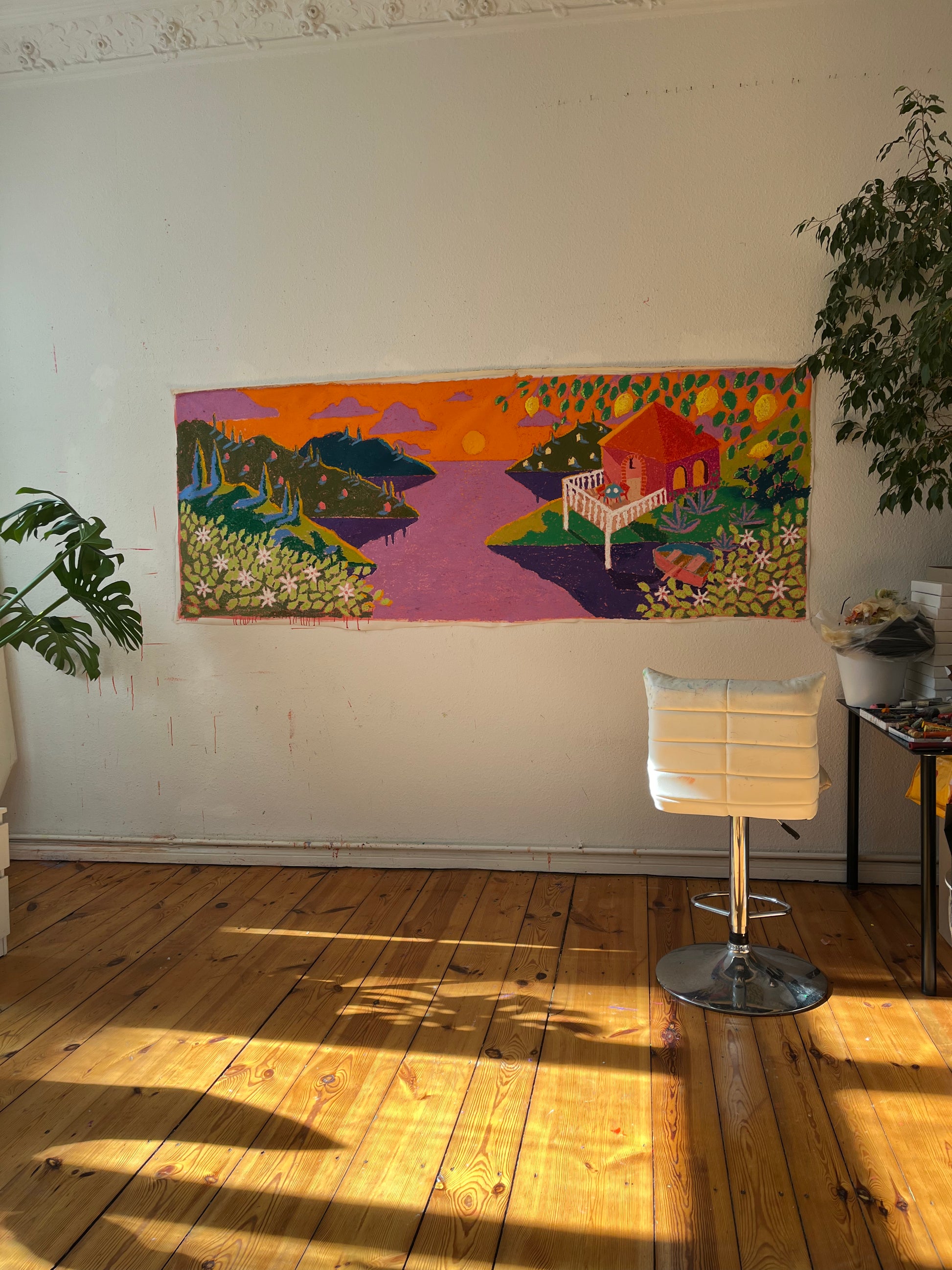 The frame on the picture is for presentation reference and is not included, the purchase contains only the painted canvas and the measurements refer to the canvas without framing