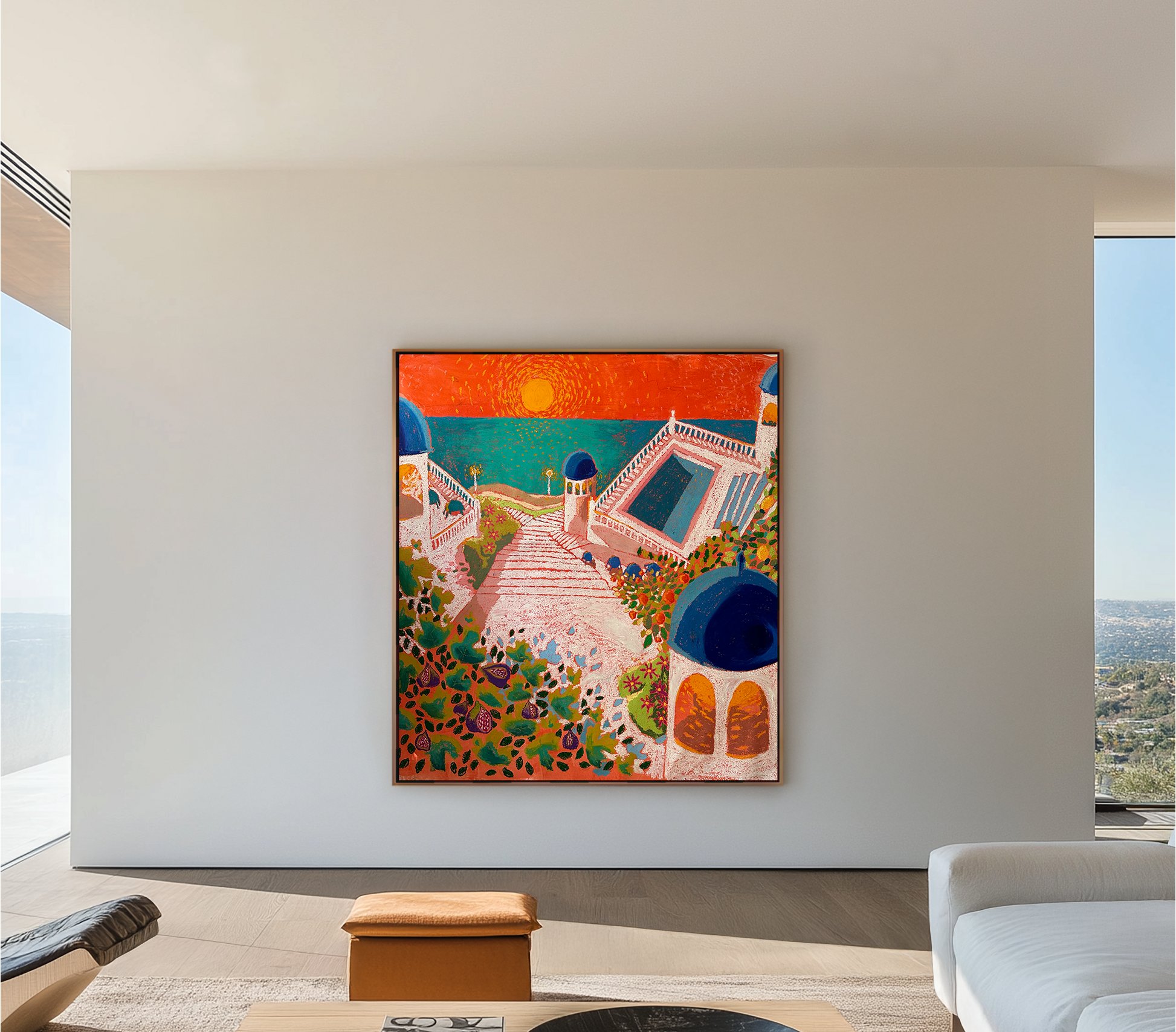 The frame on the picture is for presentation reference and is not included, the purchase contains only the painted canvas and the measurements refer to the canvas without framing